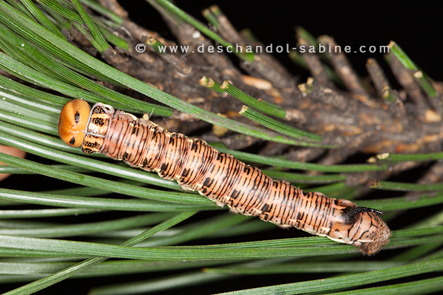 : Sphinx du Pin méridional (Sphinx maurorum), chenille 5ème stade, Laplume (47), France.