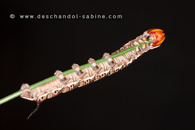 : Sphinx du Pin méridional (Sphinx maurorum), chenille 5ème stade, Laplume (47), France.