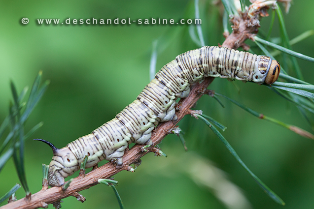 : Sphinx du Pin méridional (Sphinx maurorum), chenille 5ème stade, Laplume (47), France.