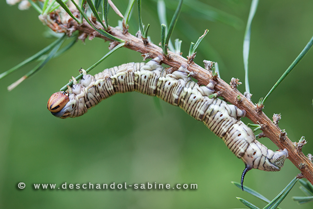 : Sphinx du Pin méridional (Sphinx maurorum), chenille 5ème stade, Laplume (47), France.