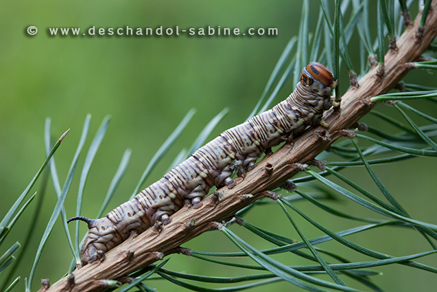 : Sphinx du Pin méridional (Sphinx maurorum), chenille 5ème stade, Laplume (47), France.