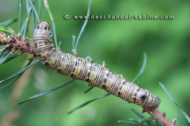 : Sphinx du Pin méridional (Sphinx maurorum), chenille 5ème stade, Laplume (47), France.