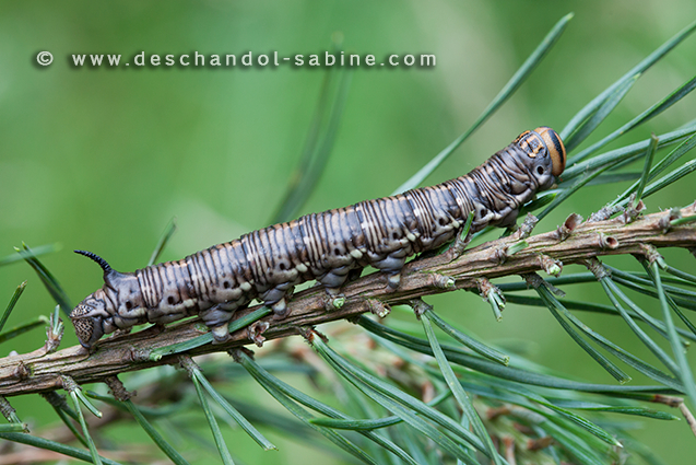 : Sphinx du Pin méridional (Sphinx maurorum), chenille 5ème stade, Laplume (47), France.