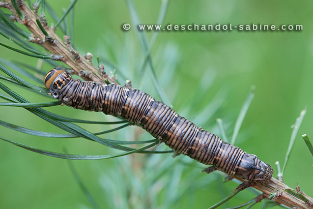 : Sphinx du Pin méridional (Sphinx maurorum), chenille 5ème stade, Laplume (47), France.