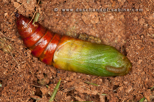 : Sphinx du Pin méridional (Sphinx maurorum), chrysalide récente, Laplume (47), France.