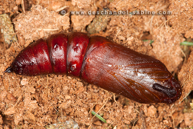 : Sphinx du Pin méridional (Sphinx maurorum), chrysalide, Laplume (47), France.