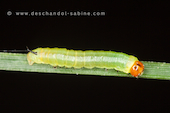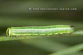 Sphinx du Pin méridional (Sphinx maurorum), chenille 1er stade, Laplume (47), France.