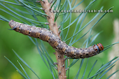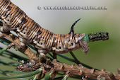Sphinx du Pin méridional (Sphinx maurorum), chenille 5ème stade, attitude de défense, Laplume (47), France.
