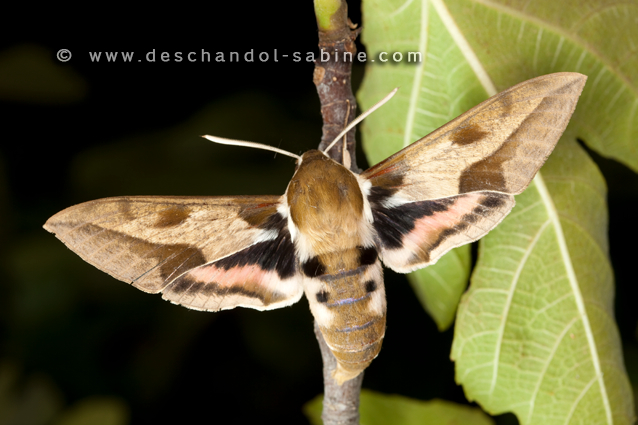 : Sphinx Nicéa (Hyles nicaea nicaea), mâle, posture d'intimidation, Carcassonne (11), France.