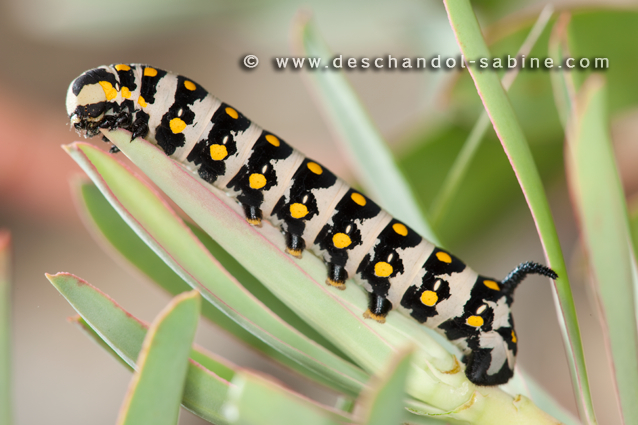 : Sphinx Nicéa (Hyles nicaea nicaea), chenille 4ème stade, Carcassonne (11), France.
