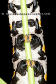 Sphinx Nicéa (Hyles nicaea nicaea), chenille 5ème stade, détail des fausses pattes, Carcassonne (11), France.