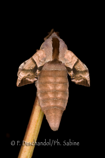 : Sphinx demi-paon (Smerinthus ocellatus ocellatus), femelle à l'éclosion, Treillières (44), France.