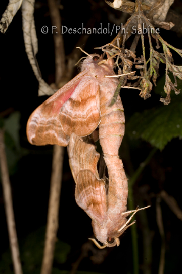 : Sphinx demi-paon (Smerinthus ocellatus ocellatus), accouplement, Treillières (44), France.