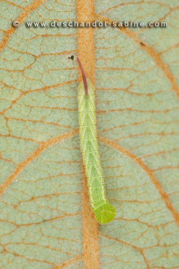 : Sphinx demi-paon (Smerinthus ocellatus ocellatus), chenille 2ème stade, Garidech (31), France.