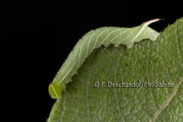 : Sphinx demi-paon (Smerinthus ocellatus ocellatus), chenille 2ème stade, Treillières (44), France.