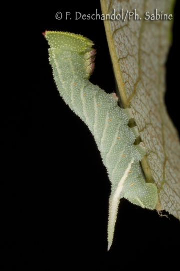 : Sphinx demi-paon (Smerinthus ocellatus ocellatus), chenille 4ème stade, Treillières (44), France.