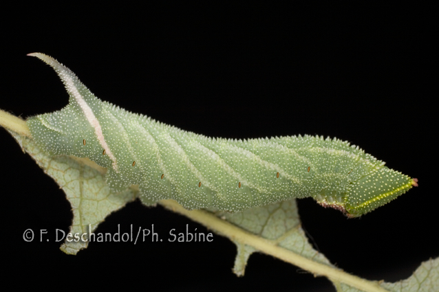 : Sphinx demi-paon (Smerinthus ocellatus ocellatus), chenille 4ème stade, Treillières (44), France.