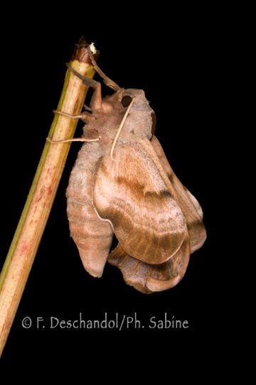: Sphinx demi-paon (Smerinthus ocellatus ocellatus), femelle à l'éclosion, Treillières (44), France.