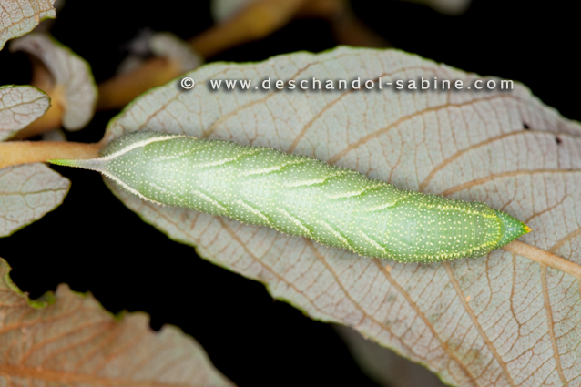 : Sphinx demi-paon (Smerinthus ocellatus ocellatus), chenille 4ème stade, Garidech (31), France.