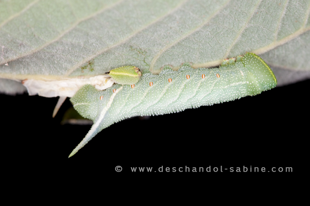 : Sphinx demi-paon (Smerinthus ocellatus ocellatus), chenille 4ème stade après la mue, Garidech (31), France.