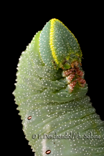 : Sphinx demi-paon (Smerinthus ocellatus ocellatus), chenille 5ème stade, Treillières (44), France.