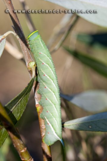 : Sphinx demi-paon (Smerinthus ocellatus ocellatus), chenille 5ème stade, Garidech (31), France.