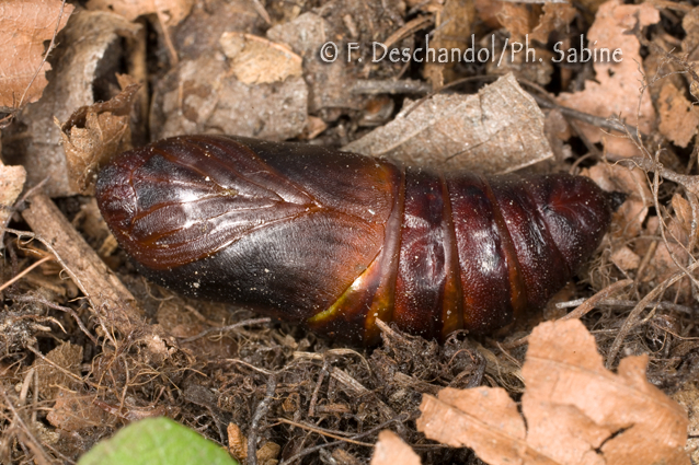: Sphinx demi-paon (Smerinthus ocellatus ocellatus), chrysalide, Treillières (44), France.