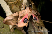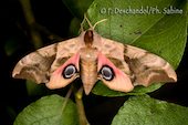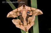 Sphinx demi-paon (Smerinthus ocellatus ocellatus), femelle en posture d'intimidation, Garidech (31), France.