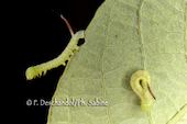 Sphinx demi-paon (Smerinthus ocellatus ocellatus), chenilles 1er stade, Treillières (44), France.