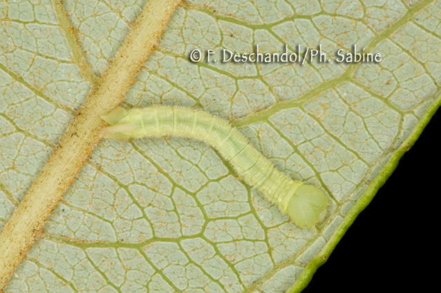 : Sphinx du Peuplier (Laothoe populi populi), chenille 1er stade, Magdeburg, Allemagne.