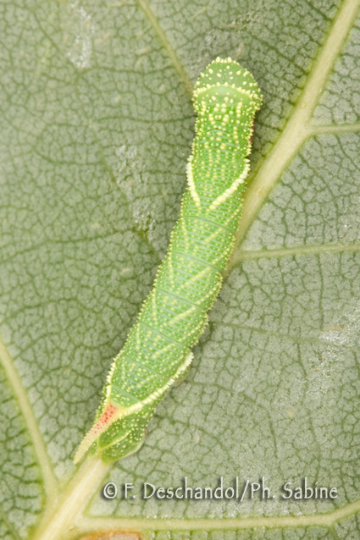 : Sphinx du Peuplier (Laothoe populi populi), chenille 2ème stade, Magdeburg, Allemagne.