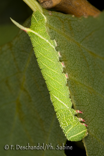 : Sphinx du Peuplier (Laothoe populi populi), chenille 3ème stade, Magdeburg, Allemagne.