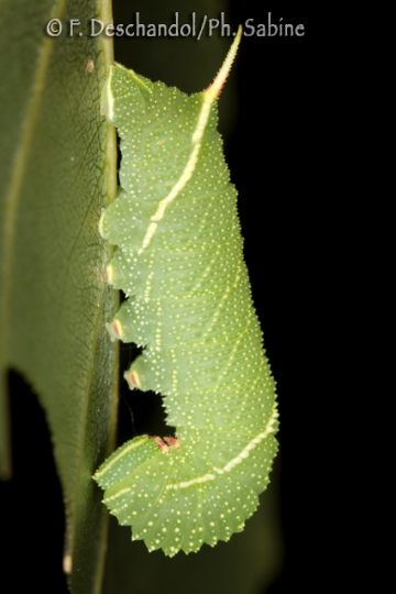 : Sphinx du Peuplier (Laothoe populi populi), chenille 3ème stade, Magdeburg, Allemagne.