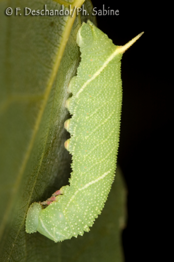 : Sphinx du Peuplier (Laothoe populi populi), chenille 3ème stade, mue proche, Magdeburg, Allemagne.