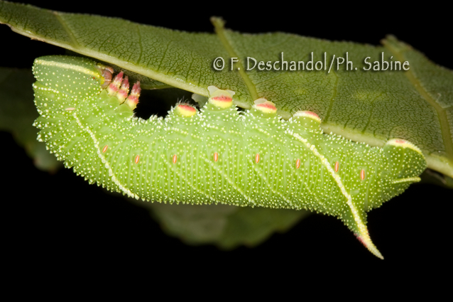 : Sphinx du Peuplier (Laothoe populi populi), chenille 5ème stade, Magdeburg, Allemagne.