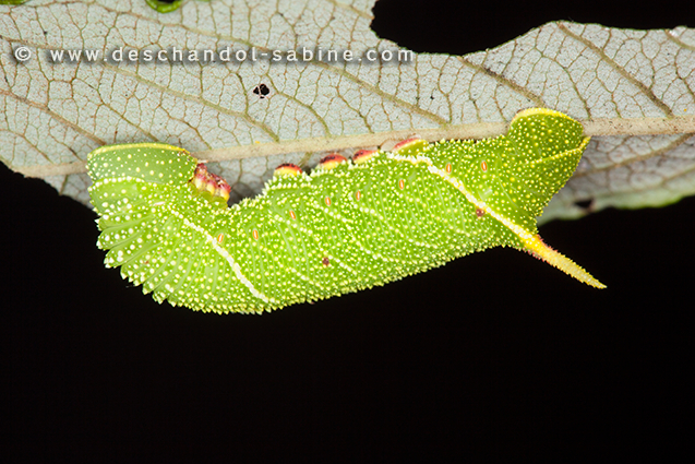 : Sphinx du Peuplier (Laothoe populi populi), chenille 5ème stade, Ciechanowiec, Pologne.
