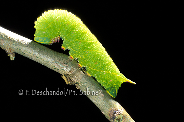 : Sphinx du Peuplier (Laothoe populi populi), chenille 5ème stade, Baie de Seine (76), France.