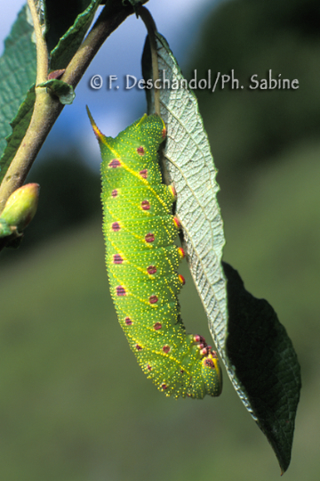 : Sphinx du Peuplier (Laothoe populi populi), chenille 5ème stade, Baie de Seine (76), France.