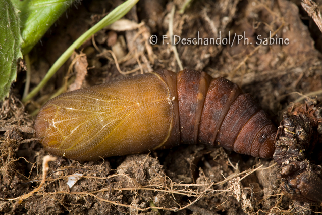 : Sphinx du Peuplier (Laothoe populi populi), chrysalide récente, Magdeburg, Allemagne.