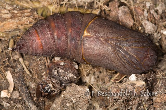 : Sphinx du Peuplier (Laothoe populi populi), chrysalide, Magdeburg, Allemagne.