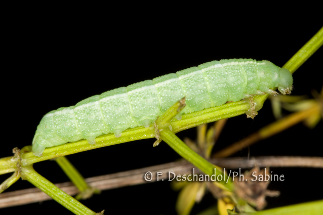 : Petit Sphinx de la Vigne (Deilephila porcellus), chenille 3ème stade, mue proche, Ulm, Allemagne.