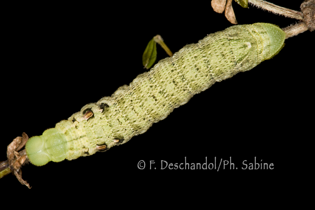: Petit Sphinx de la Vigne (Deilephila porcellus), chenille 5ème stade après la mue, Ulm, Allemagne.