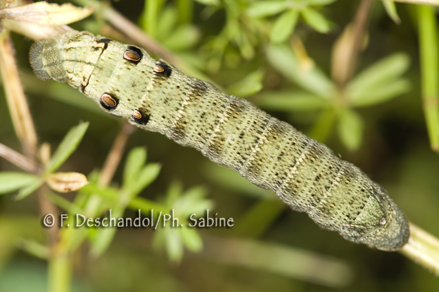 : Petit Sphinx de la Vigne (Deilephila porcellus), chenille 5ème stade après la mue, Ulm, Allemagne.