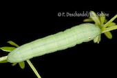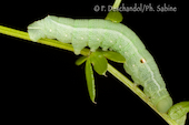 Petit Sphinx de la Vigne (Deilephila porcellus), chenille 1er stade, Ulm, Allemagne.