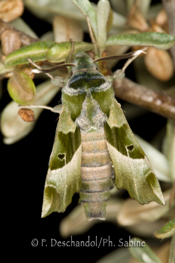 : Sphinx de l'Epilobe (Proserpinus proserpina), mâle à l'éclosion, Moravie, République Tchèque.