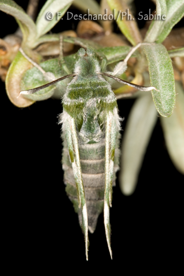 : Sphinx de l'Epilobe (Proserpinus proserpina), femelle à l'éclosion, Moravie, République Tchèque.