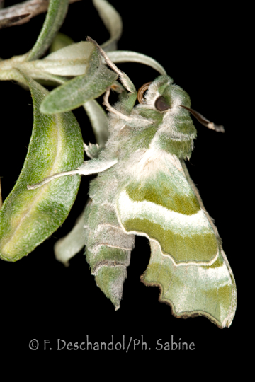 : Sphinx de l'Epilobe (Proserpinus proserpina), femelle après l'éclosion, Moravie, République Tchèque.
