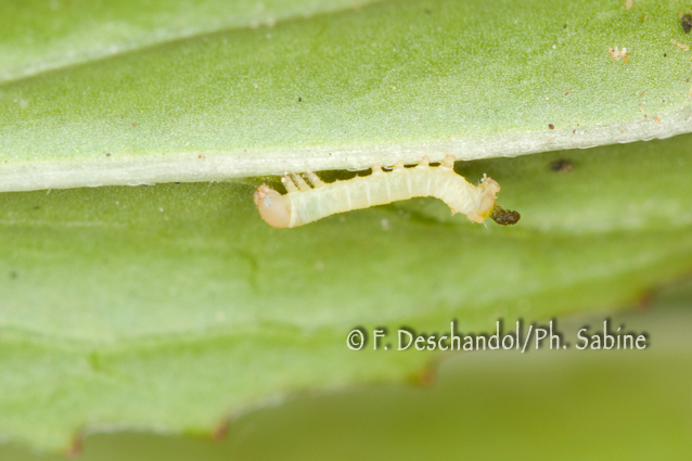 : Sphinx de l'Epilobe (Proserpinus proserpina), chenille 1er stade, Malacky, Slovaquie.