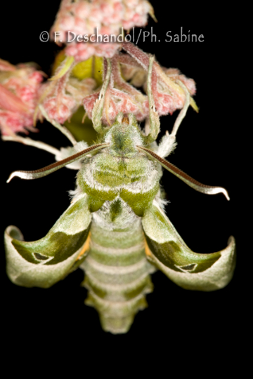 : Sphinx de l'Epilobe (Proserpinus proserpina), mâle à l'éclosion, Moravie, République Tchèque.