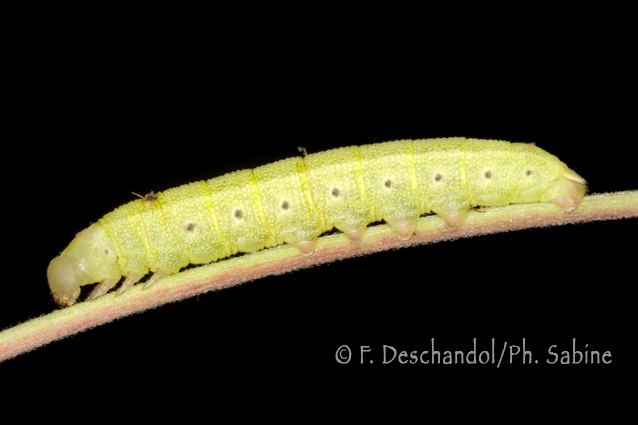 : Sphinx de l'Epilobe (Proserpinus proserpina), chenille 3ème stade, mue proche, Moravie, République Tchèque.